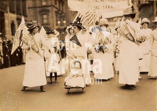 akg1657590 Emancipation and women's rights movement: Women's rights movement in the United States.-Suffragettes at a demonstration in New York City, demanding voting rights for women.-Photo, 4th May 1912.