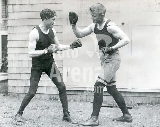 akg1555661 Kilbane, Johnny USamerikan. Boxer ( 1912-13 Weltmeister im Federgewicht); 18.4.1889 Cleveland Ohio)-31.5.1957 ebd.-Johnny Kilbane (links) mit seinem Sparring-Partner Billie Papke.-Foto, undat.