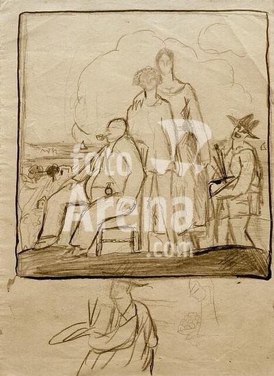 akg993509 Dalí, Salvador 1904-1989. "La familia Dalí" (The Dalí Family), c.1920. Pencil and Chinese ink on paper, 22 x 16.5cm. Private Collection.