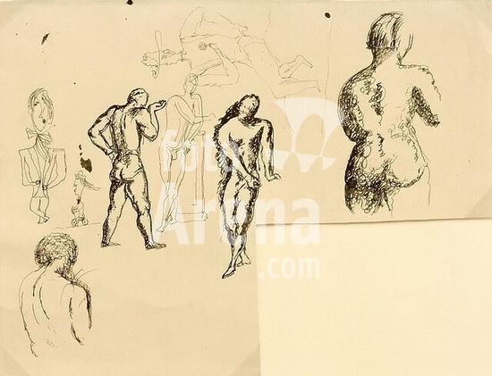 akg993522 Dalí, Salvador 1904-1989. "Sketches", c.1923. Ink on paper, 25.3 x 32.6cm. Museum: Fundacio Gala-Salvador Dali., Figueras.