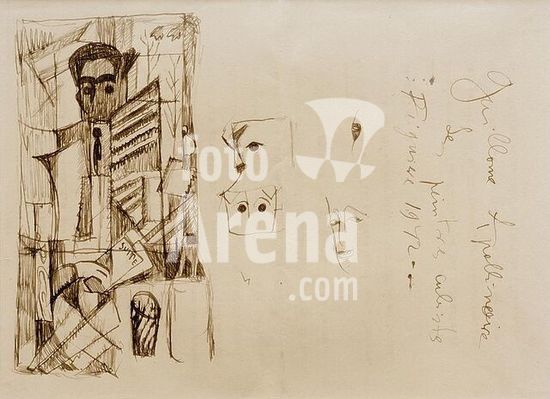 akg993524 Garcia Lorca, Federico; Spanish poet and dramatist, Fuentevaqueros, Granada 5.6.1898-Viznar, Granada 19.8.1936.-"Étude: nature morte, portrait cubiste de Frederico Garcia Lorca" (Study: still life, Cubist portrait of Frederico Garcia Lorca).-/ Drawing by Salvador Dalí (1904-1989). Ink and pencil on paper, 16.3 x 22.4 cm. Museum: Fundacio Gala-Salvador Dali., Figueras.