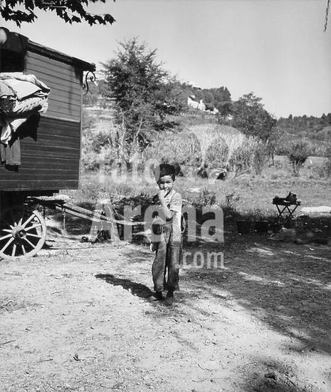 akg1517318 Völkerkunde: Sinti und Roma.-Romalager in der Nähe von La Gaude, im Hinterland von Nizza: kleiner Junge.-Foto, 1950er Jahre. Vintage print, 24 x 20 cm.