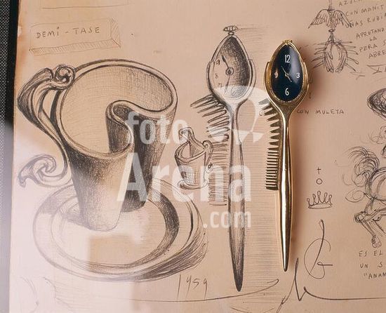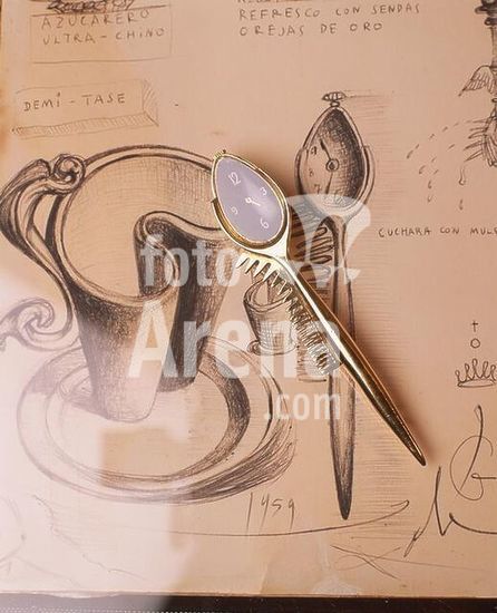 akg1673383 Dali, Salvador; 1904-1989. "Petite cuillère avec montre à quartz" ( Teelöffel mit Quartzuhr), 1959. Gold. Collection Mafalda Davis, Paris.