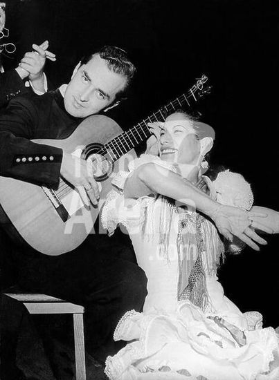 akg1899818 Amaya, Carmen; span. Flamencotänzerin und Sängerin; Somorrostro (Barcelona) 02.11.1913-Barcelona 19.11.1963.-Carmen Amaya mit ihrem Ehemann Juan Aguerro bei der Probe vor einem Auftritt im Théâtre des Champs-Elysées in Paris ( Frankreich).-Foto, 03.01.1959.