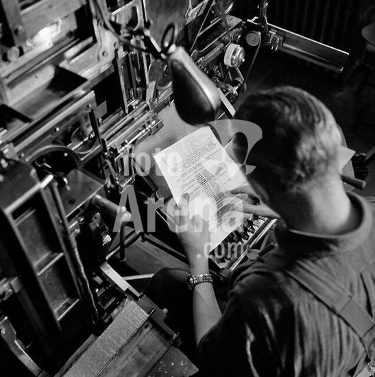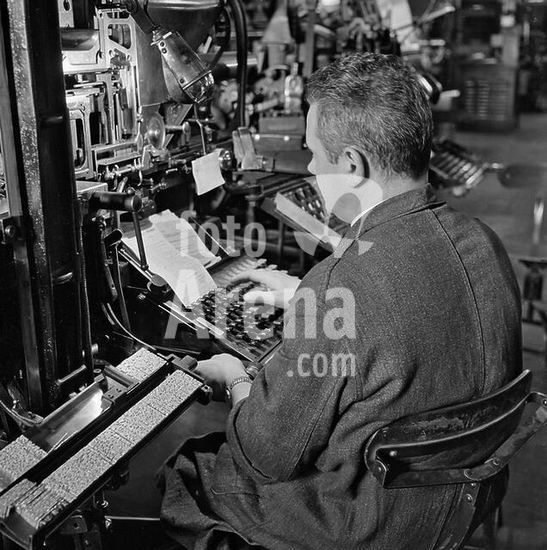 akg1566421 Rennes (Dép. Illeet-Vilaine, Bretagne, France), Quest-France, daily French newspaper founded in 1944.-Typesetter at work.-Photo, 1962.