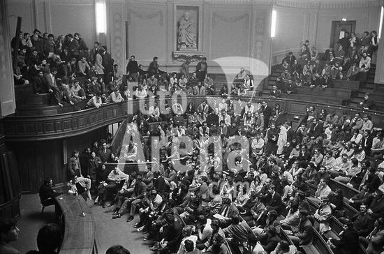 akg727567 After the reopening of Sorbonne Universi ty, students occupy the main lecture hal l. Debates and speeches take place here on 14 May 1968.