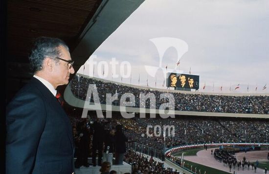 akg984927 Mohammed Resa Pahlewi (Mohammad Reza Pahlavi), Schah von Persien (1941-80, ab 1967 mit dem Titel Schahinschah); Teheran 26.10.1919-Kairo 27.7.1980.-Feierlichkeiten zum 57.Geburtstag am am 26.Oktober 1976: Der Schah im Kaiserlichen Stadion in Teheran.-Foto.