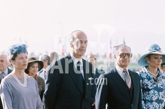 akg984971 Giscard d'Estaing, Valéry; French politiciana (1974-81 President) born 2.2.1926 in Koblenz. /-State visit to Iran, October 1976: At the end of the visit at Mehrabad airport f.l. Anne-Aymone and Valéry Giscard d'Estaing, Shah Mohammed Resa Pahlewi, Empress Farah Diba.-/ Photo.