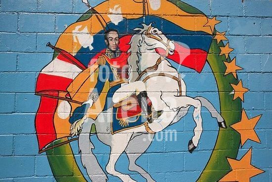 akg1246145 Bolívar, Simón; südamerik. Unabhängigkeitskämpfer und Nationalheld; Caracas 24.7.1783-bei Santa Maria ( Kolumbien) 17.12.1830.-Reiterbildnis.-Wandgemälde. Caracas (Venezuela). Foto, 17.01.2007.