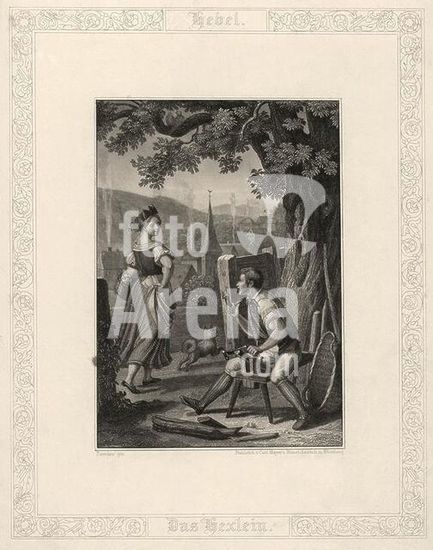akg005154 Lever, Peter (Johann Peter); Poet. 1760-1826. Works: Das Hexlein. "The Little Witch". Steel engraving by Carl Mayer (1798-1868). According to the drawing by Johann Baptist Zwecker (1814-1876). From: L. Bauer, panorama of the German classics, 1845).