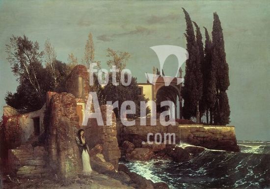 akg038614 Böcklin, Arnold, 1827-1901, Swiss painter. "Villa am Meer" (Villa by the Sea), 1878 (5th and final version). On canvas, 110 × 160 cm. Winterthur, Kunstmuseum. Museum: Winterthur, Kunstmuseum.