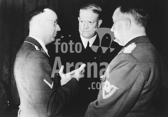 akg197214 Himmler, Heinrich, politician (NSDAP), Munich 7/10/1900 - (suicide) near Lüneburg 23/5/1945. Himmler (centre), Reinhard Heydrich and the head of the security police Kurt Daluege in the background. Photo, October 1937.