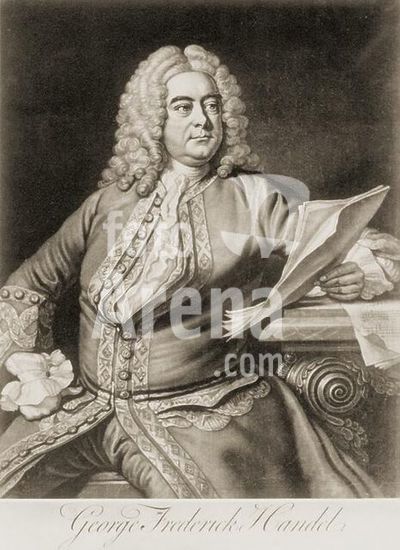 akg083763 Handel, George Frideric. German-English composer; Halle 23.2.1685 - London 14.4.1759. Portait. Mezzotint after a painting, 1749, by Thomas Hudson (1701-1779).