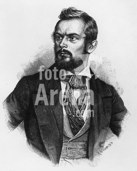 akg084485 Jordan, Wilhelm Dichter, Schriftsteller und Politiker, Insterburg 8.2.1819 - Frankfurt / Main. 25.6.1904. Porträt. Holzstich nach Lithographie, um 1850, von Fritz Hickmann (1820-1900).