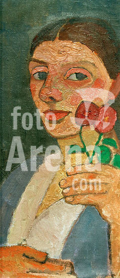 akg1041700 Paula Modersohn-Becker, born Becker, married (Otto) Modersohn; Painter. Dresden 8.2.1876 - Worpswede 10.11.1907. "Self-portrait with two flowers in the raised left hand", 1907. Oil on canvas, 55 × 25 cm. Zurich, private ownership.