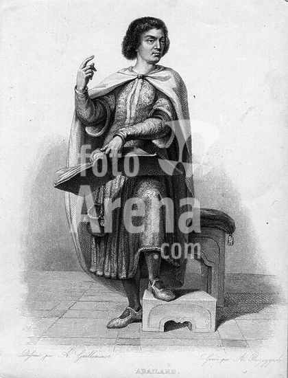 akg151989 Abaelard, Peter Scholistic philosopher and theologian, Palet near Nantes 1079 - Monastery St. Marcel-sur-Saone 21.4.1142. "ABAILARD". Steel engraving, c. 1840, by A. Pleszczynsky after Armand Guilleminot. Author: ARMAND GUILLEMINOT. ANTONI OLESZCZYNSKI.