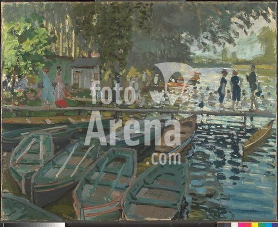 akg1559080 Monet, Claude-Oscar. French painter; 1840-1926. "Bathers at La Grenouillère". Oil on canvas, 73 × 92cm. Bequeathed by Mrs M.S. Walzer as part of the Richard and Sophie Walzer Bequest, 1979. NG6456, London, National Gallery. Museum: London, National Gallery. Copyright: Additional permissions needed for non-editorial use.