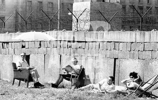 akg184227 Berlin (Germany), Walls. Berliners sunbathing at the Berlin Wall. Photo, April 1968.