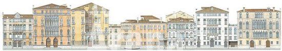 akg1975061 Ansicht eines Teils des Canal Grande in Venedig in der Pfarrei San Polo, mit den Palästen (von links nach rechts): Tiepolo, Pisani Moretta, Barbarigo della Terrazza, Cappello Layard, Grimani Marcello, Giustinian Querini, Bernardo. Copyright: For editorial use only. Not for postcards or posters.
