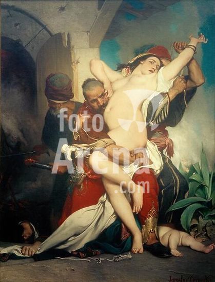 akg2126771 Cermak, Jaroslav. 1830-1878, Czech painter. "The Abduction of a Herzegovenian Woman", 1861. (Abduction of a christian woman by Ottoman men). Oil on canvas, 250 × 190.5 cm. New York, Dahesh Museum of Art. Museum: New York, Dahesh Museum Of Art.