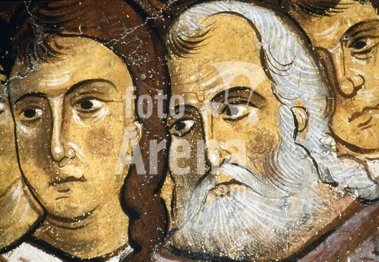 akg212903 Göreme (Cappadocia, Turkey), Karanlik Kilise - Dark Church. "The Arrest of Christ". Detail: Heads of the disciples. Fresco, Byzantine, 2nd half of the 12th century.