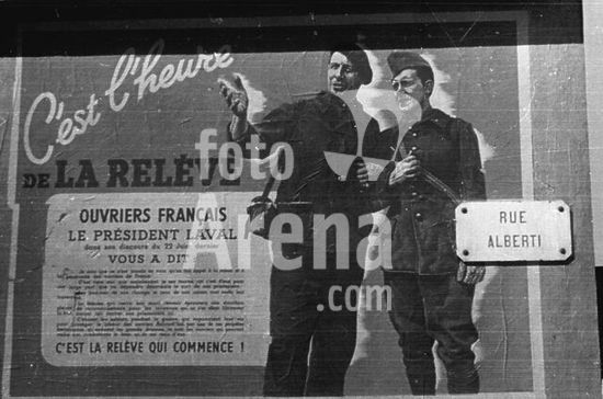 akg214261 History / World War II / Foreign workers. - French people are forced to work for the Labour Service in Germany by the S.T.O. (Service de Travail Obligatoire). during German occupation. A propaganda poster. Photo, 1943.