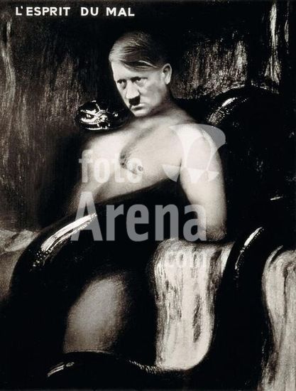 akg236580 Hitler, Adolf; Dictator (NSDAP): Braunau. 20.4.1889-- (suicide) Berlin 30.4.1945. -"L'Esprit du Mal"- (The Spirit of Evil) -Photomontage by Marinus Jacob Kjeldgaard (attrib).taken from painting. "Sin" ,1893 by Franz v. Stuck (1863-1928) (published in Magazine "Marianne". 8.5.1940. Copyright: Marinus Kjeldgaard's artistic copyright cleared via akg-images. This artwork is not in the public domain. akg-images represents the artistic copyright of this artist, please contact us from more information and to clear the necessary permissions.