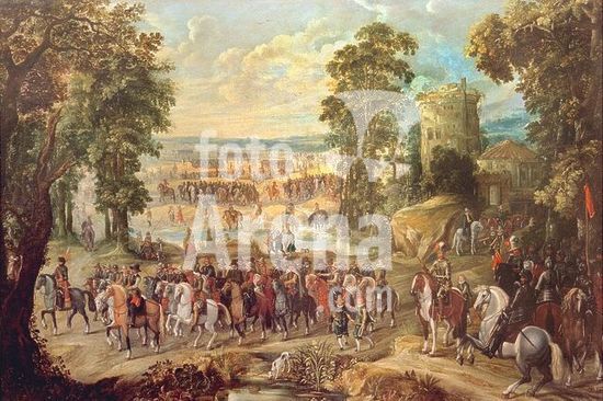 akg238213 Moritz, Prinz von Oranien, Graf von Nassau, Statthalter der Niederlande, 1567-1625. / - "Moritz bei der Vorbereitung auf die Schlacht bei Nieuwpoort (...) " (Span.-niederl. Krieg: Sieg Moritz von Oraniens über die Spanier am 2. Juli 1600).- Gemälde, 1614, von Jacques van der Wyhen (um 1588-um 1638). (Zuschreibung), Öl / Lw., 140 × 220 cm. Delft, Stedelijk Museum Het Prinsenhof. Museum: Delft, Stedelijk Museum Het Prinsenhof.