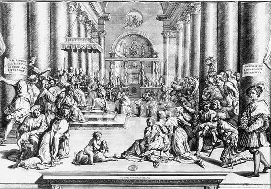 akg250227 Constantine I, the Great, Roman emperor. Naissus c. 280 - 25.2.337. The Donation of Constantine (Constantine transfers authority over Rome to the Pope). Etching, 1722, by Francesco Avila (c. 1677 - c. 1740) based onthe fresco, c. 1520/25, of Giulio Romano (1499-1546) in the Sala di Costantino in the Vatican. 46.7 × 67.3cm. Inv. No. Stampe V. 19, Nr. 217. Rome, Biblioteca Apostolica Vaticana. Museum: Rome, Biblioteca Apostolica Vaticana.