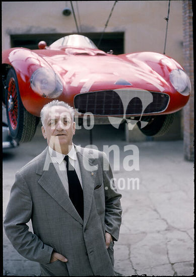 akg253956 Ferrari, Enzo Anselmo, 1898 - 1988, Italian motor racing driver and entrepreneur, the founder of the Scuderia Ferrari Grand Prix motor racing team, and subsequently of the Ferrari automobile marque. Enzo Ferrari. Photo, Modena, 1956. Copyright: For editorial use only.