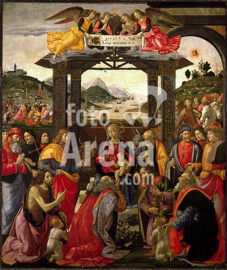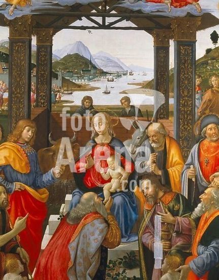 akg254931 Ghirlandaio, origin. Domenico Bigordi 1449-1494. "Adoration of the Kings", 1488. Oil on wood, 285 × 240cm. Florence, Ospedale degli Innocenti, Galleria dell'Ospedale degli Innocenti.