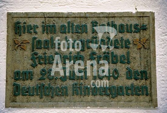 akg258084 zu: Fröbel, Friedrich; Pädagoge; 1782-1852. Bad Blankenburg (Thüringen), Rathaus. (Am 28. Juni 1840 Ort der Gründung des ersten deutschen Kindergartens durch Friedrich Fröbel). Gedenktafel. Foto, undat., nach 1989.