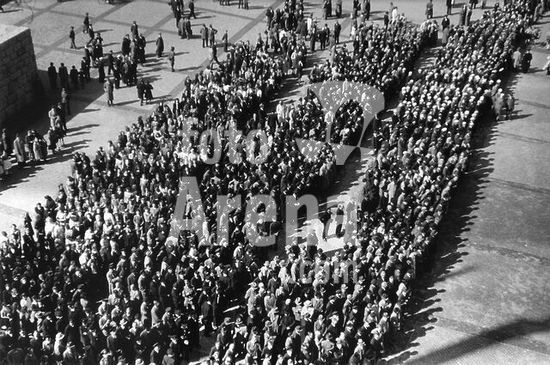 akg265675 Tschammer und Osten, Hans v.; politician. (NSDAP), Reichssportführer (Reich Sports Leader) & SA-Obergruppenführer. 1887-1943. Urn internment ceremony at Langemarckhalle on the Reichssportfeld, Berlin, Sunday, 2 May 1943: mourners outside Langemarckhalle. Photo.