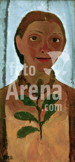 akg277594 Modersohn-Becker, Paula b. Becker, married (Otto) Modersohn Painter Dresden 8.2.1876 - Worpswede 10.11.1907. "Selfportrait with camelia branch", 1907. Oil on wood, 62 × 31cm. Essen, Museum Folkwang. Museum: Essen, Museum Folkwang.