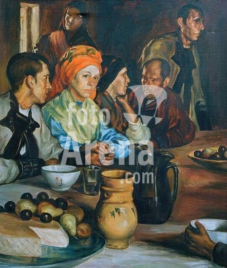 akg296858 Sotomayor y Zaragossa, Fernando. 1875-1960. "Ländliche Verlobungsfeier" (Dorfhochzeit?), undat. Öl auf Leinwand, 56 × 46 cm. Privatsammlung , 2000. Author: FERNANDO ALVAREZ DE SOTOMAYOR Y ZARAGOZA. Copyright: Additional copyrights must be cleared.