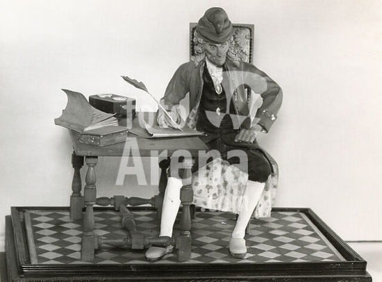 akg3113850 Voltaire, eigentl. François Marie Arouet franz. Schriftsteller Paris 21.11.1694 - ebd. 30.5.1778. Voltaire an seinem Schreibtisch sitzend. Maquette in gebranntem Ton, 1773. Paris, Musée Carnavalet. Museum: Paris, Musee Carnavalet.