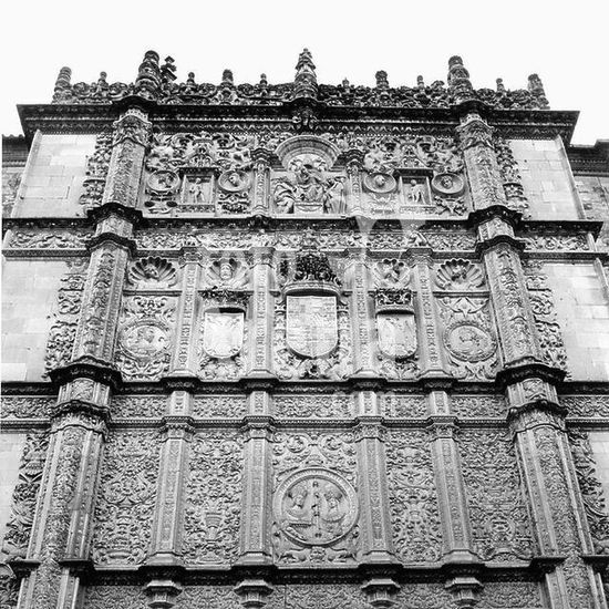akg311992 Salamanca (Spain), University - Universidad. (built 1415-33), main facade facing Patio de las Escuelas. (portal, Plateresque style, 1528/29). Relief sections above the portal with portraits of Catholic kings, coat of arms of Charles V etc. Photo, 1963.