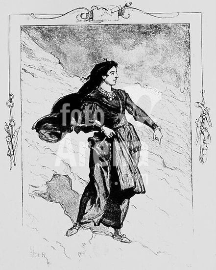 akg328754 Mérimée, Prosper; franz. Schriftsteller. 1803-1870. Werke: Colomba (Novelle, 1840). Illustration. Nach Zeichnung, 1904, von Daniel Vierge. (1851-1904). Paris, Bibliothèque Nationale. Museum: Paris, Bibliothèque Nationale.