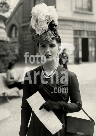 akg3746327 Mode / Damenmode:. Frankreich, 1939. - Elegante Dame mit Federhut auf der Pferderennbahn in Auteuil (Paris) anläßlich. des großen Hürdenrennens. - Foto, 21. Juni 1939.