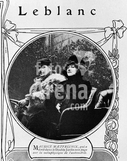 akg381116 Maeterlinck, Maurice; French-Belgian author; Gent 29 August 1862 - Orlamonde near Nice 6 May 1949. Maurice Maeterlinck and his partner, actress and singer Georgette Leblanc (1869-1941), in an automobile. Photo reproduction (magazine illustration). Paris, Bibliothèque Nationale. Museum: Paris, Bibliothèque Nationale.