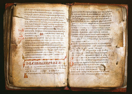 akg3862936 Handschrift, bulgarisch, 13. Jahrhundert. - Doppelseite. - Aus einem Evangeliar, geschrieben in griechischer Halbunziale. Auf Pergament (102 Blatt), Blattmaße 21 x 16 cm. Cat. GE Nr. 126. Rila, Nationalmuseum Kloster Rila. Museum: Rila, National Museum of Rila Monastery. Author: ANONYMOUS.