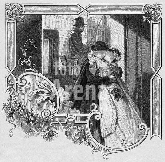 akg387379 Heine, Heinrich; Dichter; 1797-1856. Werke: Deutschland. Ein Wintermärchen. (1844). "Abschied von Paris". Holzstich, unbezeichnet. Aus: Heinrich Heines Werke, Hrsg. v. H. Laube, Wien, Leipzig, Prag (S.Bensinger). o. J. (1884-88), Bd. 3, S. 5. Berlin, Sammlung Archiv für Kunst und Geschichte. Museum: Berlin, Sammlung Archiv für Kunst und Geschichte.