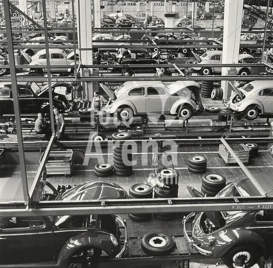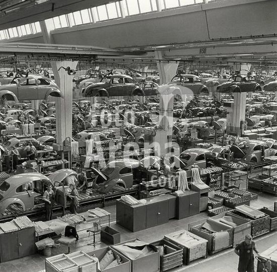 akg397287 Technik / Industrie:. Automobilindustrie. Volkswagenwerk in Wolfsburg (Niedersachsen): Montage des VW-Käfer. Foto, 1954.