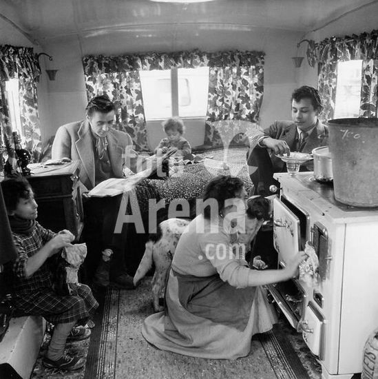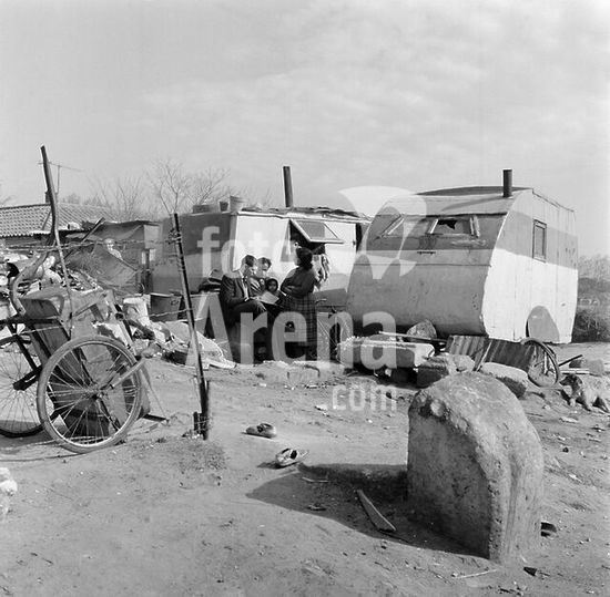 akg433341 Völkerkunde: Sinti und Roma. Roma-lager in der Umgebung von Paris (Gebiet zwischen Porte de Saint-Ouen und Porte Clignancourt): Familienleben im Wohnwagen. Foto, 1957/58.