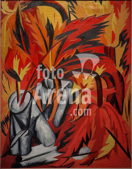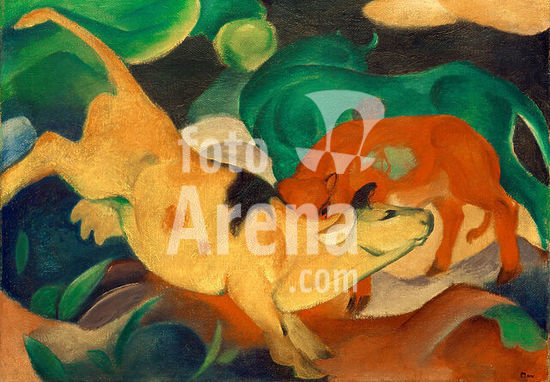 akg456725 Marc, Franz. German expressionist painter and printmaker; Munich 8.2.1880 - Braquis 4.3.1916. "Kühe, gelb, rot, grün" (cows, yellow, red, green), 1911. Oil on canvas, 62.9 × 88 cm. Gift from Gabriele Münter, 1961. Inv. no. G 13 140. Munich, Lenbachhaus. Museum: Munich, Städtische Galerie im Lenbachhaus.