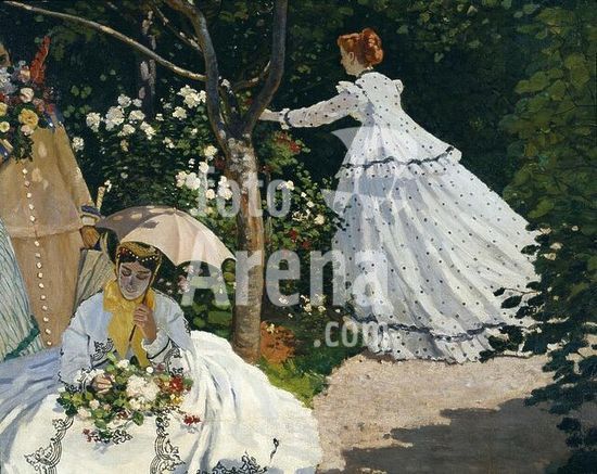 akg457518 Monet, Claude; 1840-1926. "Femmes au jardin" (Women in the garden). 1866/67. Detail. (Begun in 1866 in plein-air at Ville-d' Avray, completed in winter at Honfleur; women on the left modelled on Camille Doncieux, Monet's future wife). Oil on canvas, 256 × 208cm. Inv. No. RF 2773. Paris, Musée d'Orsay. Museum: Paris, Musee d'Orsay.
