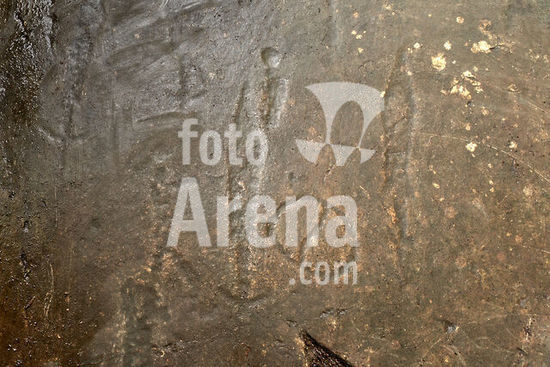 akg4634989 Prähistorische Felszeichnung mit der Darstellung eines Menschen, von Schwertern oder Lanzenspitzen, eines Schildes (?) an der Pietra delle Griselle. Gardasee, oberhalb der Punta San Vigilio bei Torri del Benaco, Italien, Venetien. Prehistoric rock drawing depicting a man, swords or lances, a shield (?) at the Pietra delle Griselle. Lake of Garda, above Punta San Vigilio, near Torri del Benaco, Italy, Venetia. Photo © Ralph Rainer Steffens.