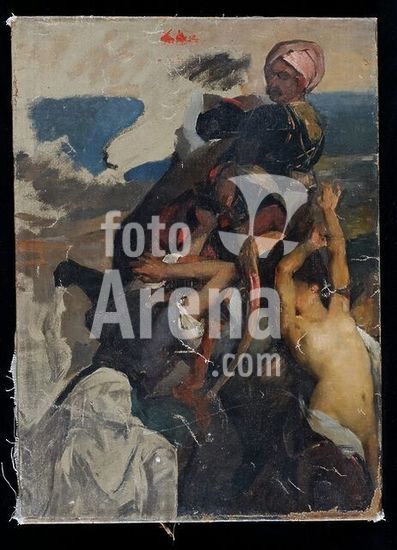 akg4741109 Ecole française vers 1830-1840. ESQUISSE D'UNE SCÈNE ORIENTALISTE. Huile sur toile. 46 x 33 cm. Collection particulère. Author: ANONYMOUS.