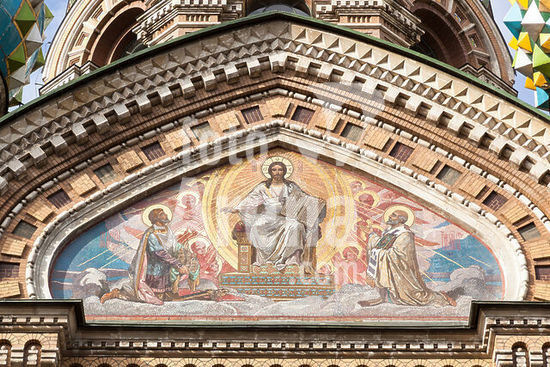 akg4769675 Exterior mosaic, Church on Spilled Blood, also Church of the Saviour on Spilled Blood, St Petersburg, Russia.