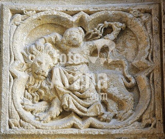 akg4882718 Cathédrale Notre-Dame de Rouen : Portail des Libraires - Quadrilobes du soubassement (1280) Tapisserie sculptée de 150 médaillons - Scènes de la Création du monde / Vie d'Adam et Eve / Bas-reliefs d'un monde en miniature de personnages d'une vérité criante.